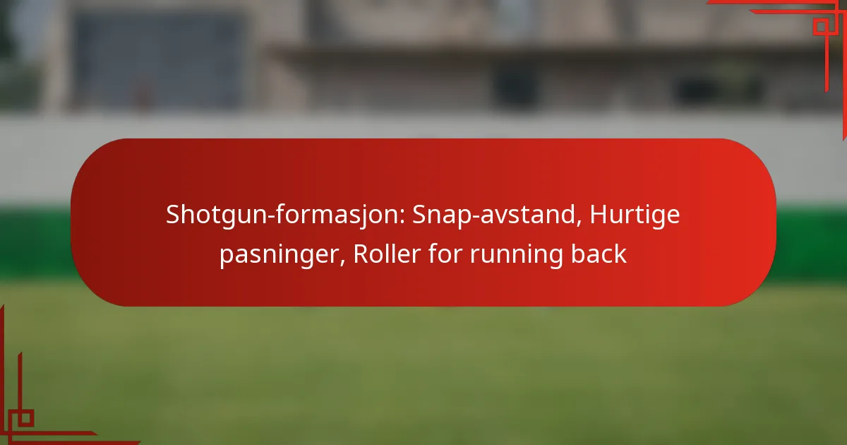 Shotgun-formasjonen er en populær offensiv strategi i fotball som legger vekt på raske pasninger og effektive roller for løpere. Nøkkelstrategier inkluderer å håndtere snap-avstand, utføre raske pasninger og definere løperansvar, som alle bidrar til en dynamisk offensiv tilnærming.