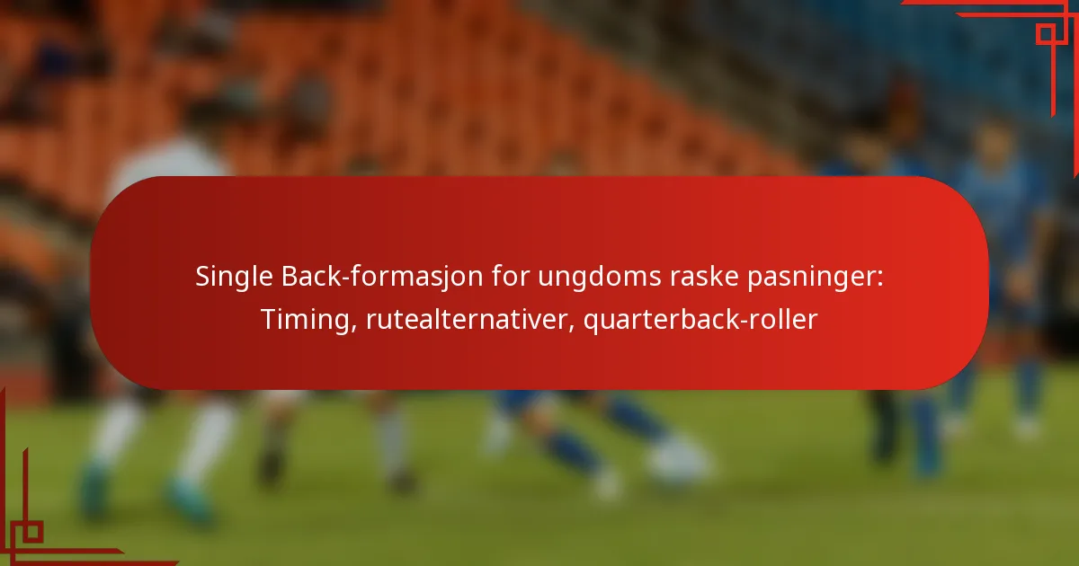 Single back-formasjonen er en effektiv offensiv oppstilling i ungdomsfotball, med en running back bak quarterbacken, som legger til rette for en rekke raske pasningsspill. Timing er avgjørende for å utføre disse raske pasningene, og sikrer at quarterbacken slipper ballen på det optimale tidspunktet for at mottakerne skal få separasjon. Med et variert utvalg av rutealternativer tilgjengelig, gjør denne formasjonen det mulig for unge spillere å utvikle ferdighetene sine samtidig som de utnytter defensive svakheter effektivt.