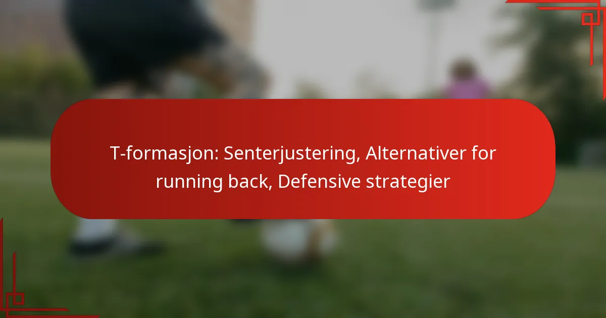 T-formasjonen er et tradisjonelt offensivt oppsett i amerikansk fotball som har tre running backs plassert bak quarterbacken, og danner en ‘T’-form. Denne formasjonen forbedrer ikke bare løpespillet, men gir også flere alternativer for ballbærere, noe som gjør den tilpasningsdyktig for ulike offensive strategier. Senterjustering er avgjørende i denne formasjonen, da den former effektiviteten til den offensive linjen og påvirker utførelsen av spillet. Ved å utnytte T-formasjonen kan lag utnytte defensive sårbarheter samtidig som de maksimerer sitt offensive potensial.