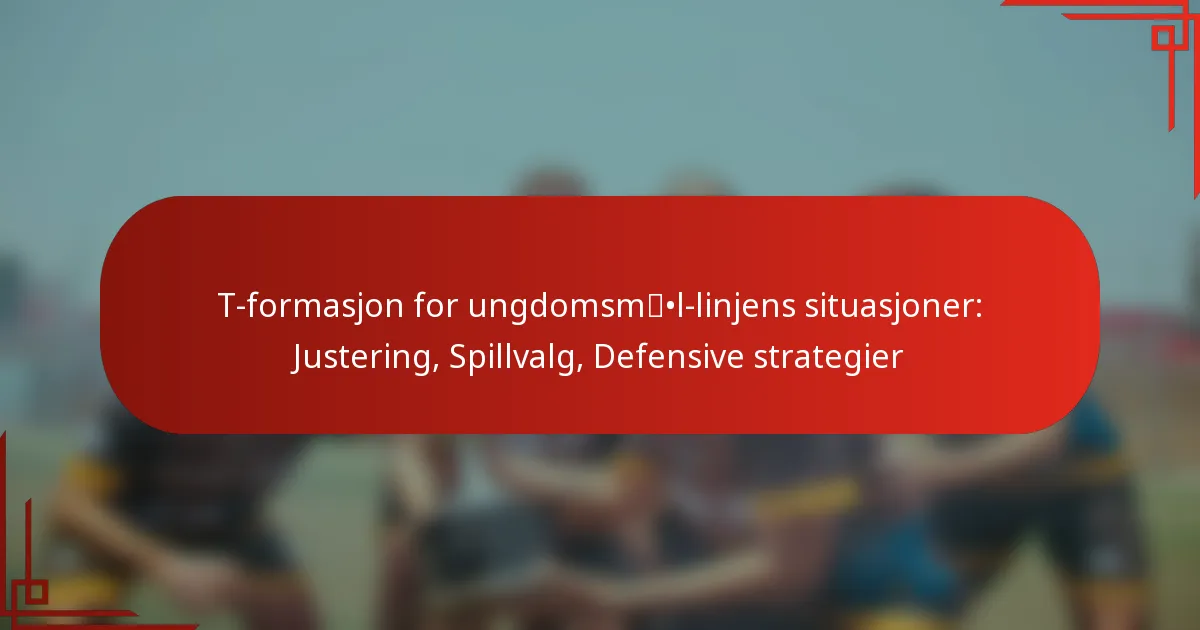 Å justere spillere i T-formasjonen for mållinjesituasjoner er avgjørende for å maksimere offensiv effektivitet. Denne oppstillingen fokuserer på å skape et sterkt løpespill samtidig som den gir alternativer for raske pasninger, noe som gjør det essensielt å forstå spillerposisjonering og justeringer basert på forsvaret.
